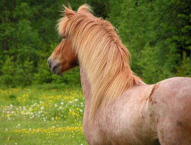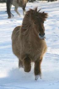 | The Chestnut color in Icelandic Horses is recessive to Black. Chestnut must be passed to the horse from horse will be Black, yet will carry the Chestnut gene and have the potential to pass it to any offspring. Chestnut Horses can be modified by several of the color modifying genes. The color modifiers affecting Chestnut and found in the Icelandic Horse are Cream, Dun, Pinto, Roan, Grey and Splashed White. While a Chestnut horse can carry the silver dapple gene, it will be hidden, yet it can be passed to offspring. We are looking for photos of beautiful Icelandic Horses in all of these colors or combinations there of. |