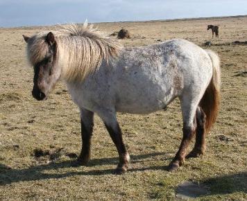 | Black Roan Pinto (Black + Roan + Pinto) Lilja frá Gröf ~ Photo by Malin Persson at Syðra kolugil |